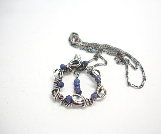 50th birthday gift for women. Sapphire necklace. Silver birthstone necklace. Raw sapphire necklace. September birthday gift