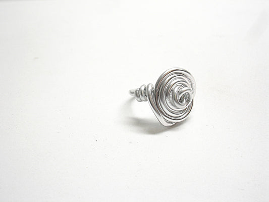Aluminium chunky ring for women. Wire wrapped statement ring. Aluminum contemporary jewelry. Spiral ring