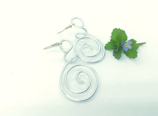 Aluminium earrings with spirals. Aluminum wire wrapped earrings. Double spiral earrings