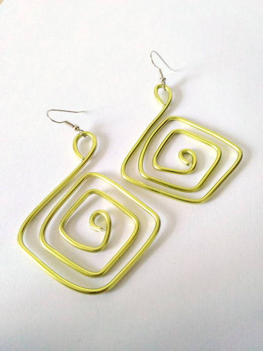 Aluminium square spiral earrings. Contemporary aluminum jewelry. Gift for her. Green dangle earrings.