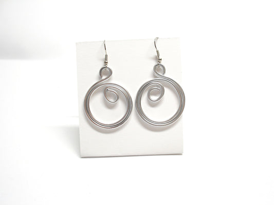Big silver aluminum spiral earrings. Aluminium dangle celtic earrings. Contemporary jewelry. Christmas gift for her
