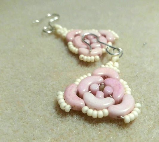 Boho baby pink bead earrings. Dangle beaded earrings. Gifts for women.