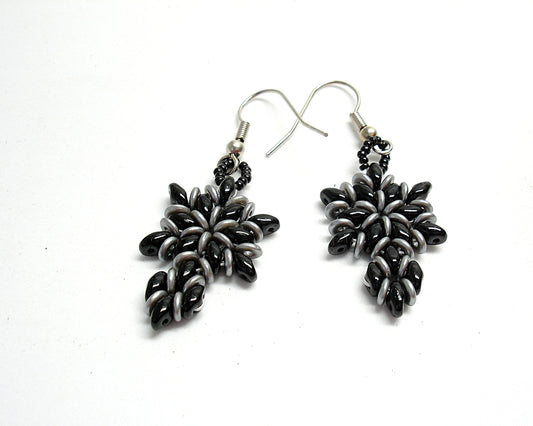 Black and gray dangle earrings. Beaded earrings for women. Gothic jewelry