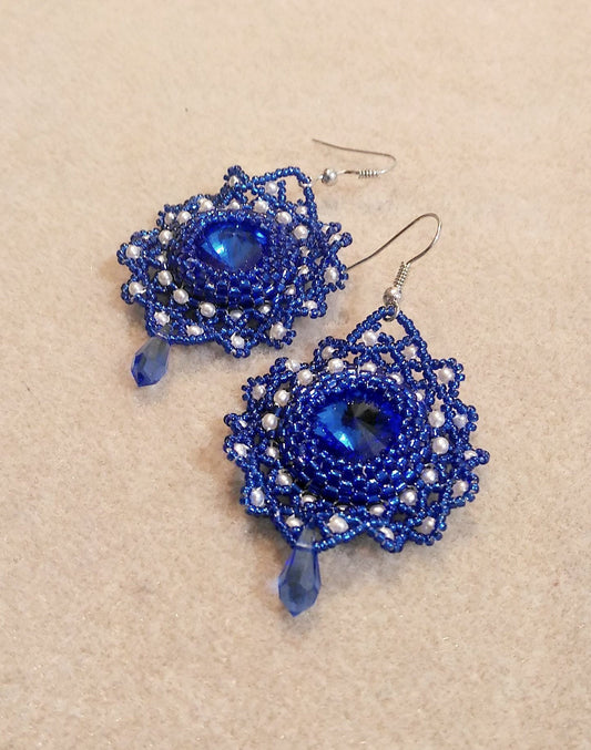 Blue crystal earrings. Beaded dangle earrings. Bridal earrings. Handmade jewelry