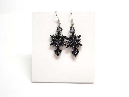 Black dangle earrings. Beaded earrings for women. Gothic jewelry