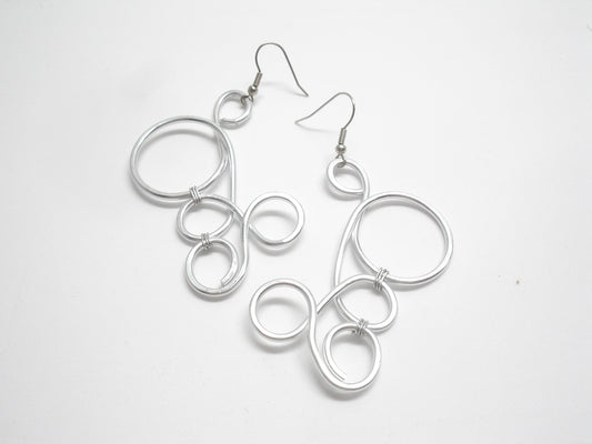 Statement dangle earrings. Woman aluminium big earrings. Aluminum jewelry. Wire wrap long earrings