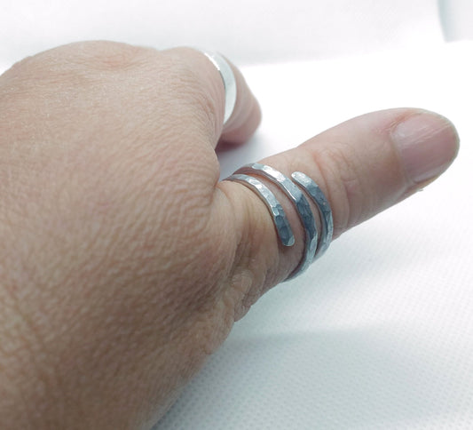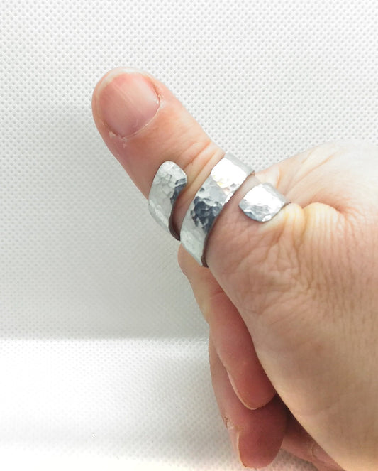 Wrap thumb rings for women. Hammered aluminium ring. Contemporary handmade jewelry. Statement ring