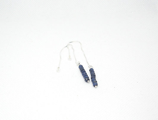 Long Sapphire earrings. Threader earrings. Minimalist birthstone earrings. Gifts for her. Gemstone chain earrings