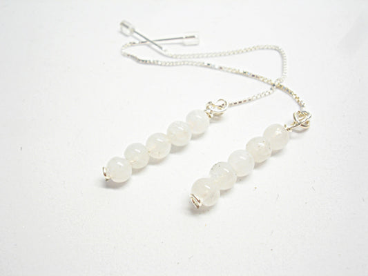 Pull through earrings. Moonstone threader earrings. White gemstone chain earrings. Moonstone jewelry. Gift for her