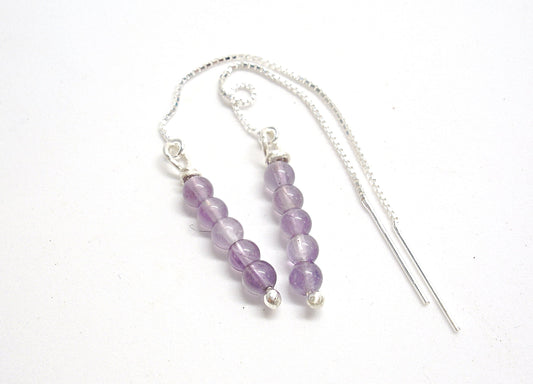 Minimalist pull through earrings. Lavender amethyst earrings. Threader earrings. Gemstone earrings. February birthstone earrings