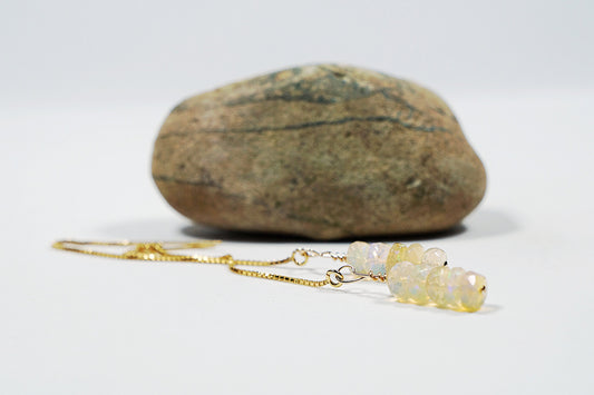 Ethiopian opal pull through earrings. Gemstone dangle earrings. Long threader earrings. Chain thread through gold filled earrings