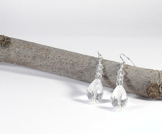 Clear quartz earrings. Bridesmaid gift. Bridesmaid dainty earring. Bridal jewelry. Bride white earrings. Rock crystal earrings.