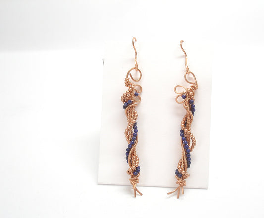 Blue gemstone earrings. Lapis lazuli and copper earrings gift for women.