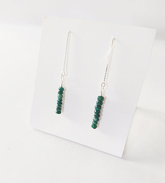 Raw emerald chain threader earrings. Gemstone dangle earrings. Emerald jewelry. Green Thread Earrings. Emerald drop earrings