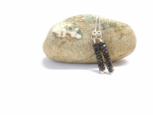 Black opal threader earrings. Gemstone dangle earrings. Opal jewelry. Gifts for her. Chain threader earrings