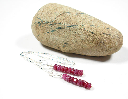 Raw ruby threader earrings. Gemstone dangle earrings. Ruby jewelry. Gift for her. Long chain threader earrings