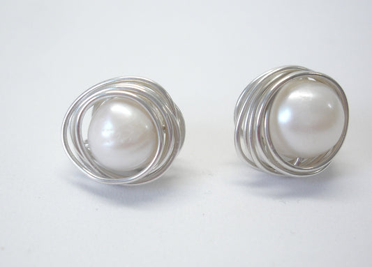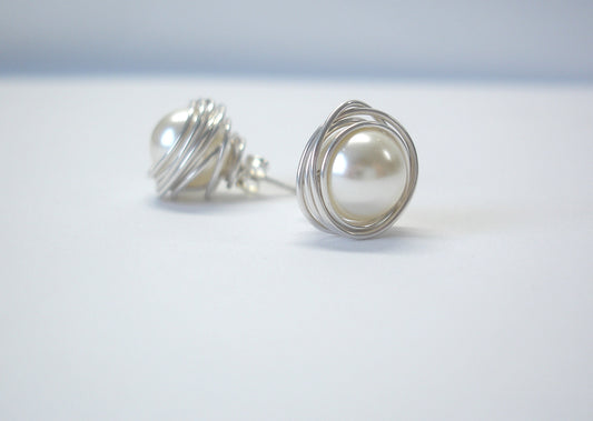 Bridesmaid gift. Silver earrings. Stud earrings. Gift for her. Pearl earrings. Bridesmaid earrings. Romantic earrings