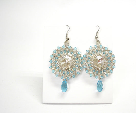 Blue crystal earrings. Beaded dangle earrings. Bridal earrings. Handmade jewelry