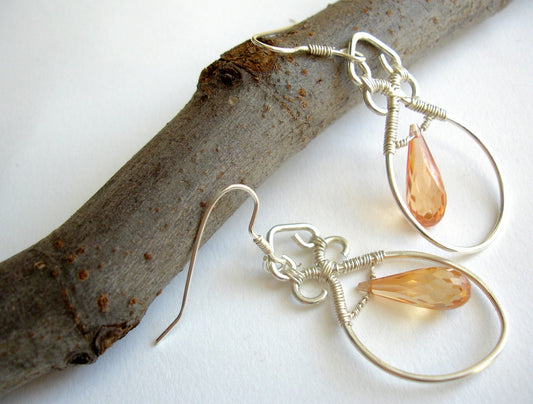 Bridal earrings. Sterling silver dangle earrings. Silver jewelry. Dressy earrings with cubic zirconia pendant.