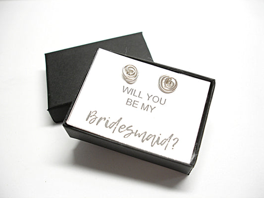 Bridesmaid proposal gift. Tiny stud earrings. Bridesmaid gift. Silver jewelry. Flower girl gift