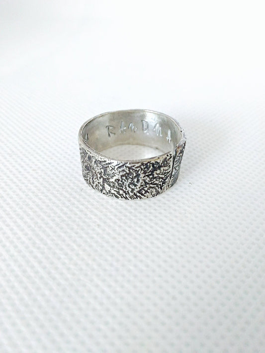 Unusual wedding rings. Silver contemporary jewelry. Unique engagement ring. Patterned silver ring