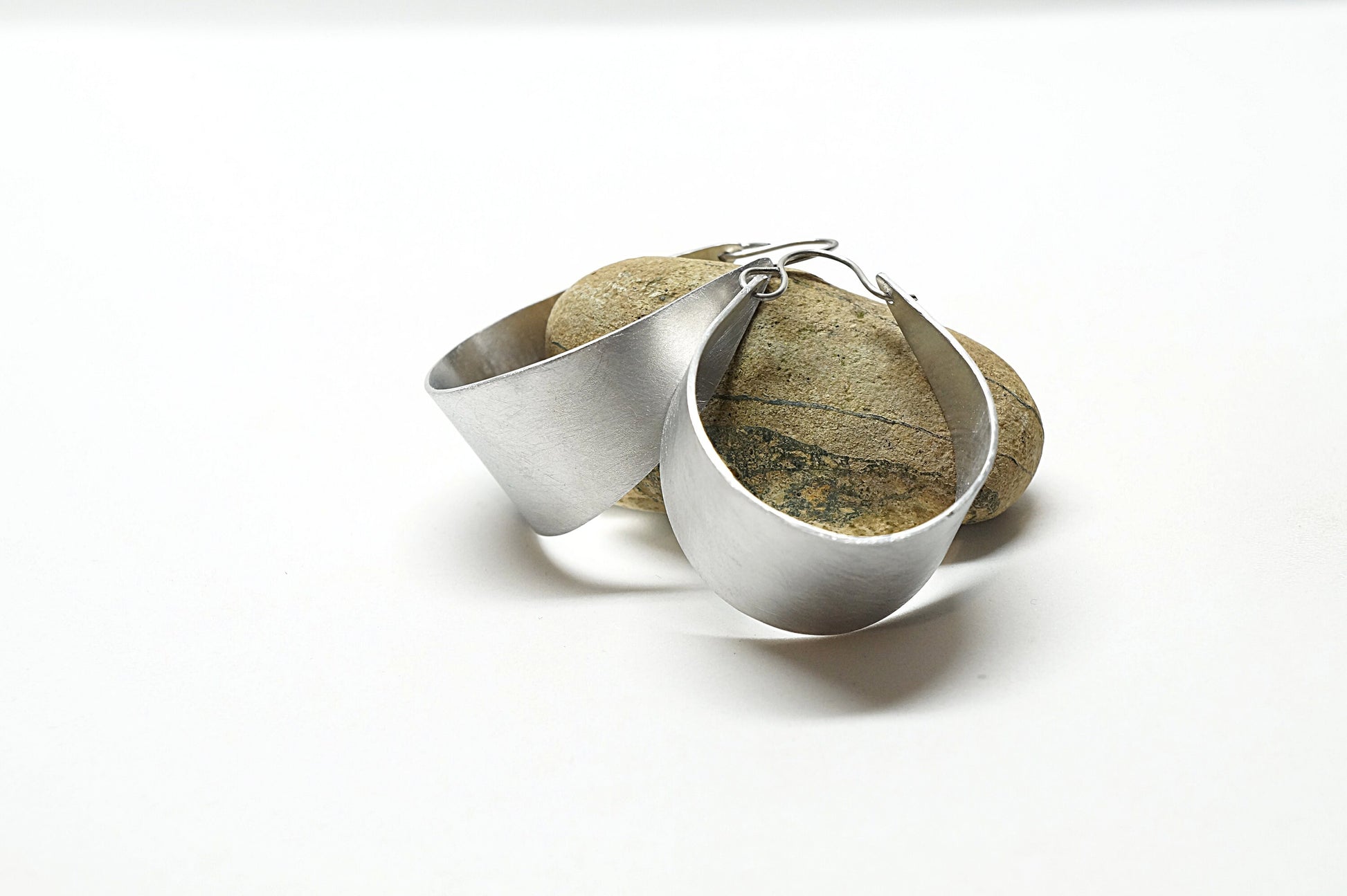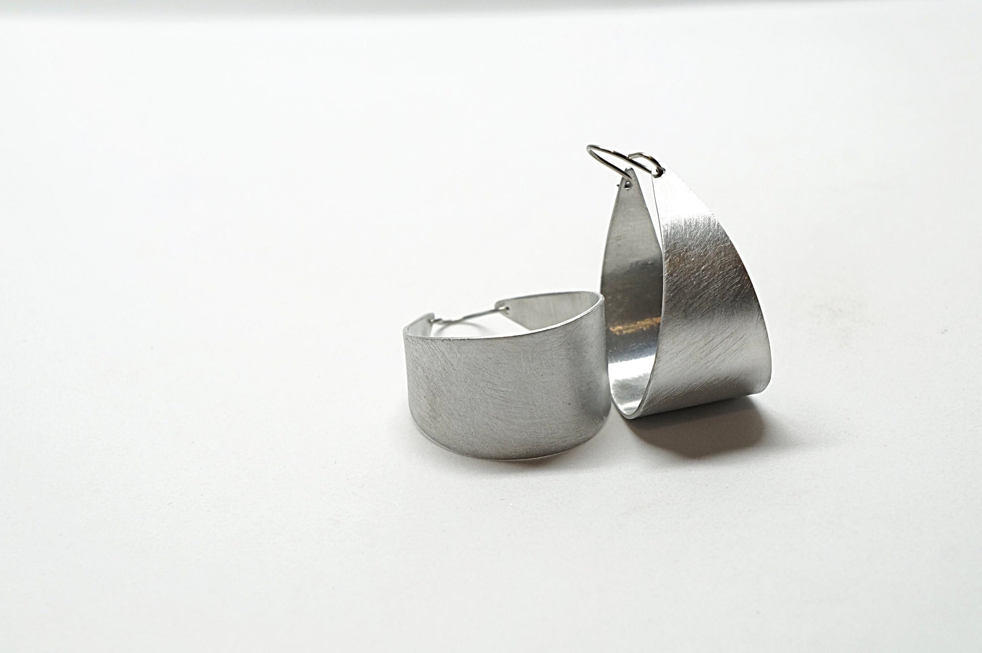 Large hoop aluminium earrings. Wide brushed silver matte earrings. Everyday big silver aluminum earrings. Statement aluminum jewelry