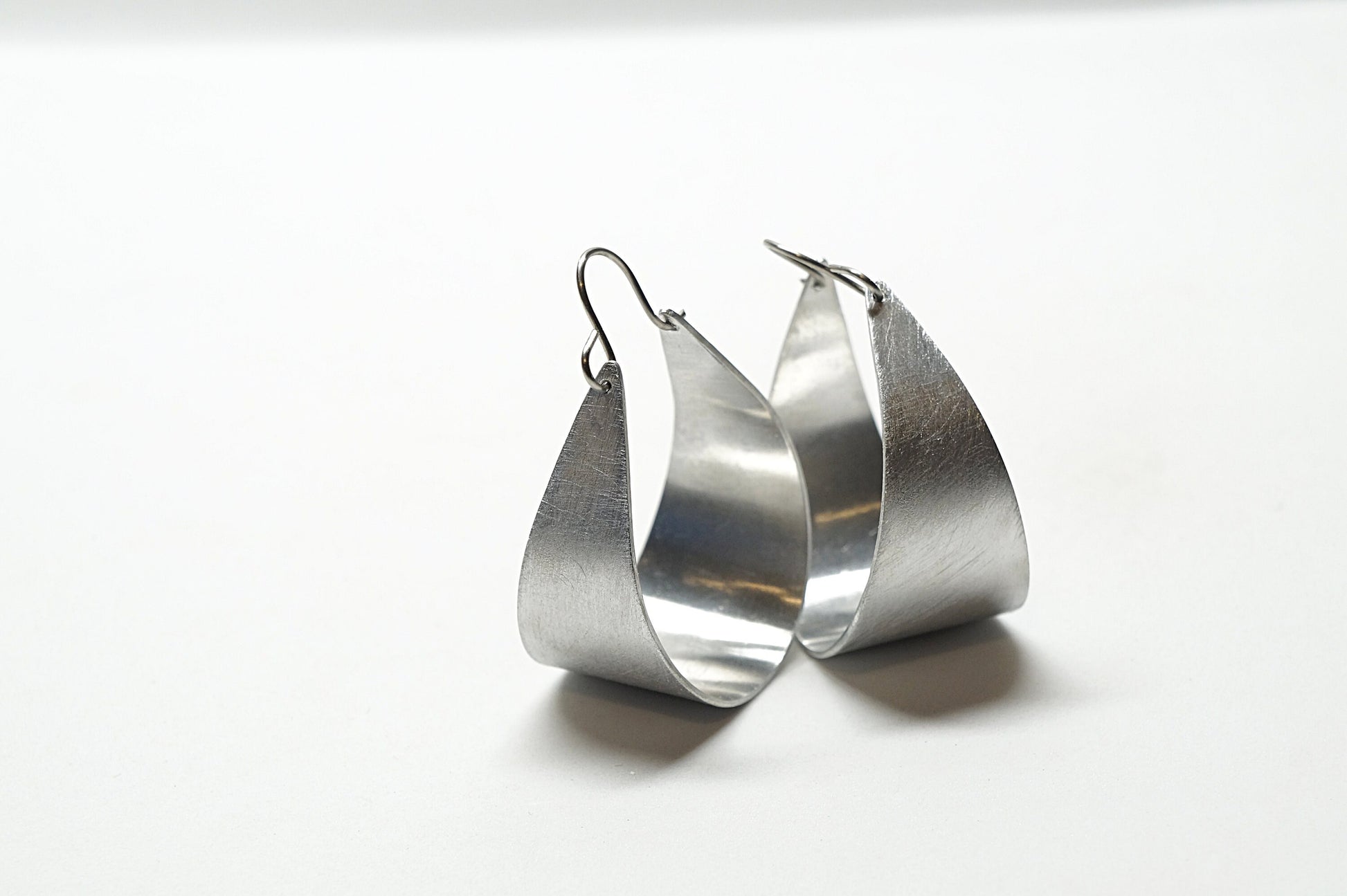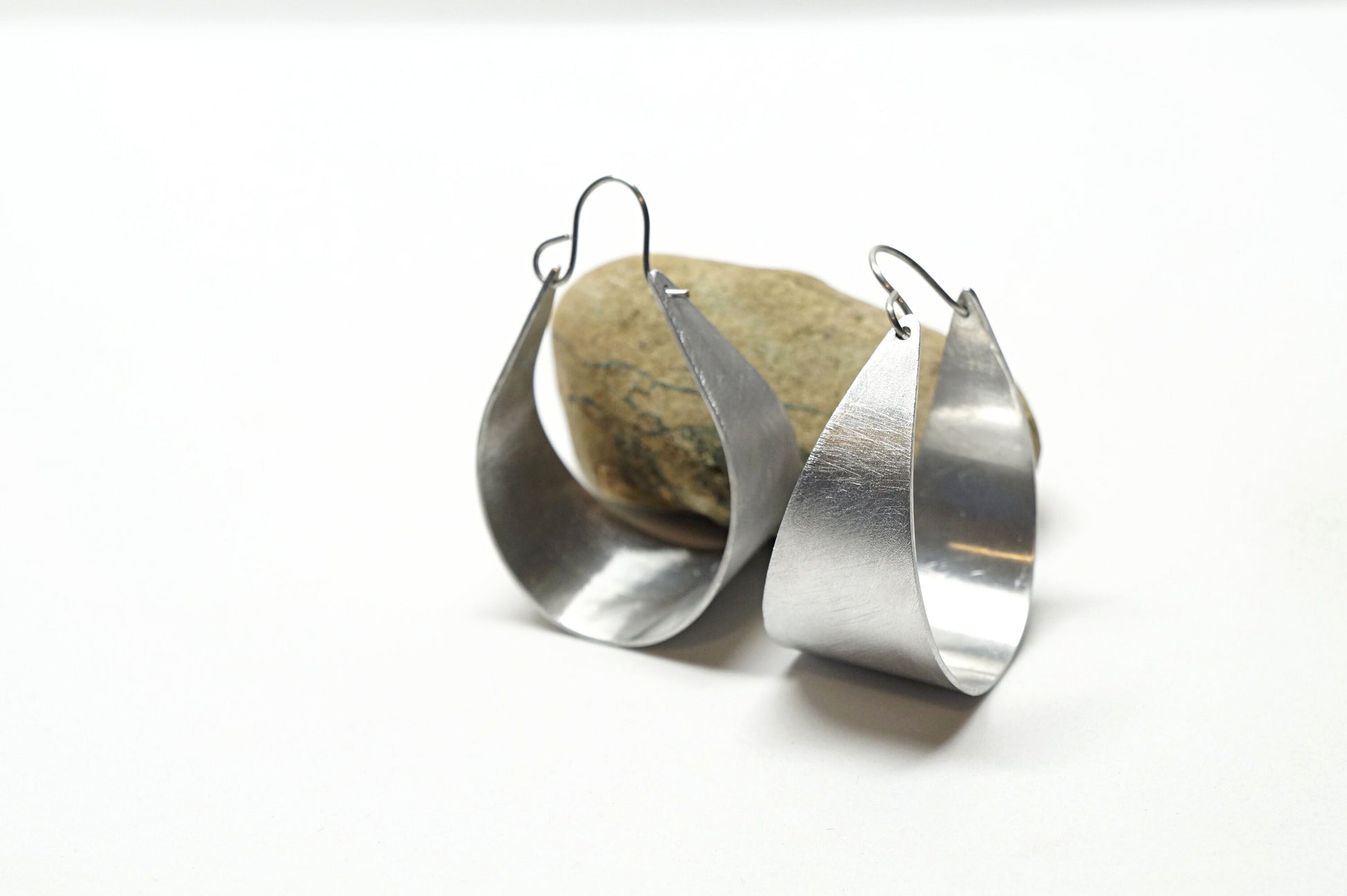 Gorgeous silver matte handmade earrings made with brush aluminium.